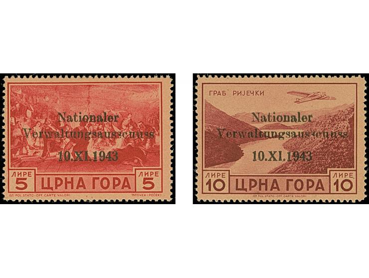 1943, Verwaltungsausschuss 25C-5L., je mit Aufdruckfehler "Verwaltungsausscuuss", postfrisch, tadellos, komplett bei einer Auflage von nur 25 möglichen Sätzen kaum einmal angeboten und eine der ganz großen Seltenheiten, 10 L. sign. sowie Fotoattest Brunel (2025)