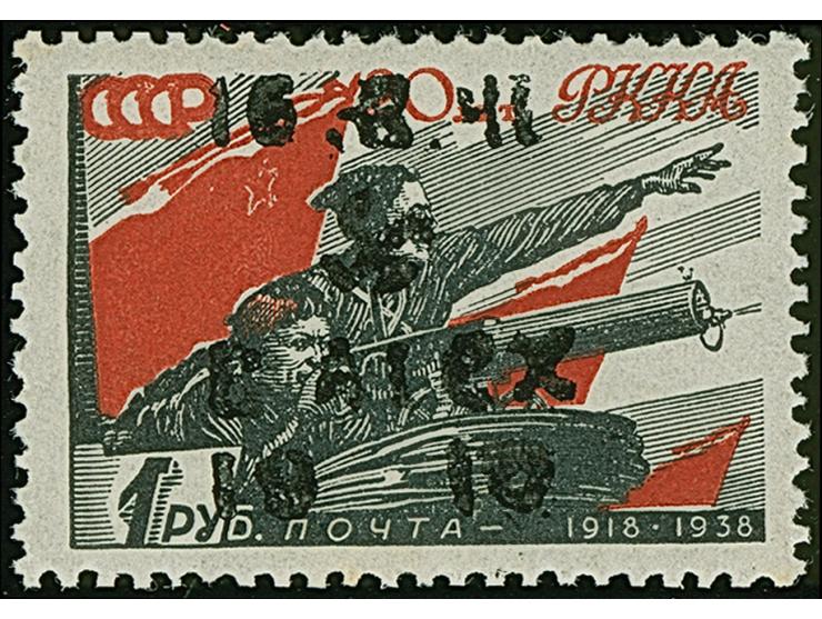 1942, Hakenkreuz 4mm: 10 Rbl. auf 1 R., postfrisch, in tadelloser Erhaltung, eines der schönsten Stücke dieser großen Raritäten der Besetzungsausgaben II. WK, sign. EKeiler sowie Fotoattest Krischke BPP (1990)
