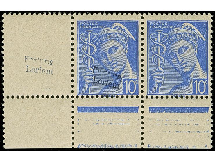 1945, Merkurkopf 10 C. im waagerechtes Unterrandpaar mit Leerfeld in Markengröße, das Leerfeld und die linke Marke mit Handstempelaufdruck, die rechte Marke ohne Handstempelaufdruck, postfrisch, tadellos, in dieser Form eine große Seltenheit, sign. Tust sowie Fotoattest Krischke (1985)