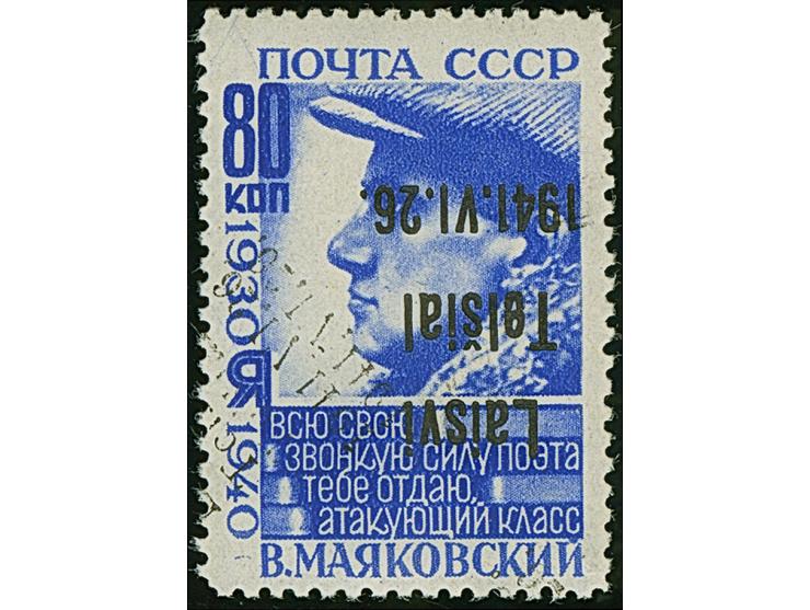 1941, Sondermarken, 2. Auflage: Majakowski 80 K. ultramarin, mit kopfstehendem Aufdruck in Type IIIb, zusätzlich sind drei weitere Aufdrucke in Type I erkennbar, der kopfstehende Aufdruck mit markantem Aufdruckfehler “Telsial statt Telsiai”, die Gummierung rückseitig weitestgehend durch die Aufdruckfarbe geschwärzt, postfrisch, tadellos. ProFi hat lediglich 5 Marken registriert, die Marke mit dem Aufdruckfehler ist ein Unikat, u.a. sign. J.G. sowie Keiler BPP mit Fotoattest (1975) sowie Fotoattest Krischke (2001)