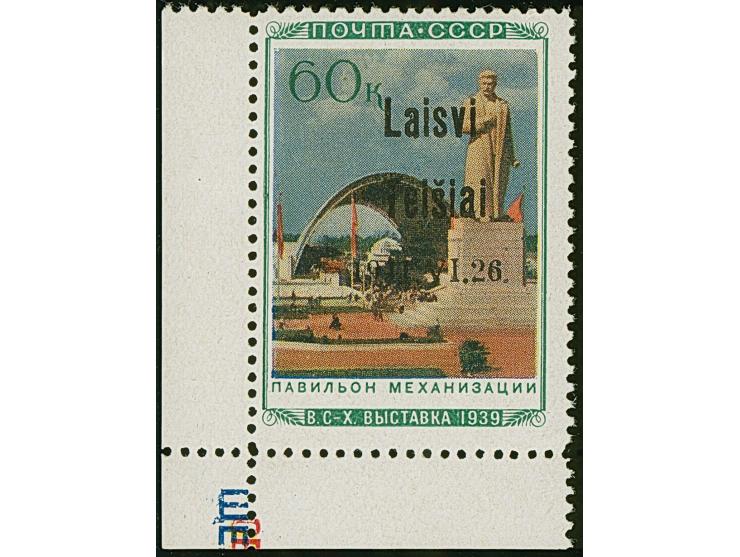 Mechanisierungs-Pavillon 60K. aus der linken unteren Bogenecke, mit Aufdruckfehler “Teisiai statt Telsiai”, links unten mit Druckvermerk, postfrisch, tadellos, eine seltene Marke mit einer Auflage von nur 37 Stück, u.a. sign. Z. Mikulski sowie Fotoattets Krischke BPP (1984)