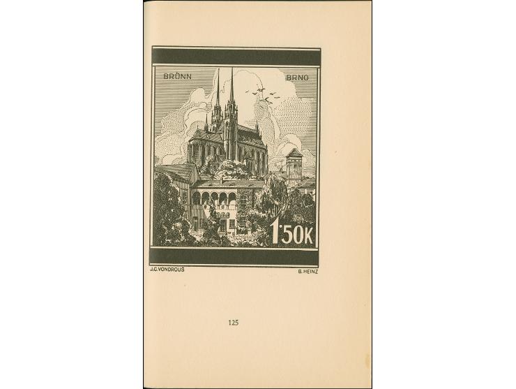 1942, Erinnerungsbuch “IN MEMORIAM BOHUMILA HEINZE”, enthält einen Überblick über sein Werk und weitere Informationen, inkl. 34 Kopien von Radierungen und Zeichnungen (größter Teil für Banknoten und Briefmarken verwendet), in 120 nummerierten Exemplaren auf Büttenpapier gedruckt, hier Nummer “87”, vollständig und in einwandfreiem Zustand