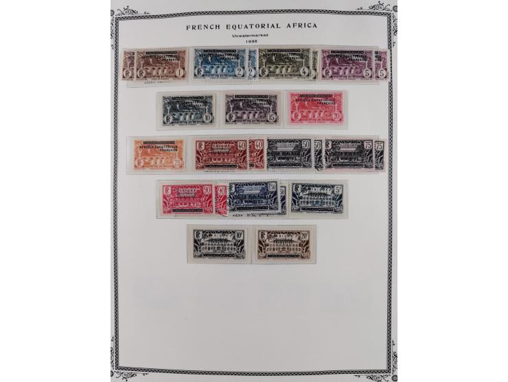 1936/49, Collection on 21 Scott album leaves, unused and mnh, starting Congo overprinted sets 1936, including good part air mail issues, S/S and postage due.