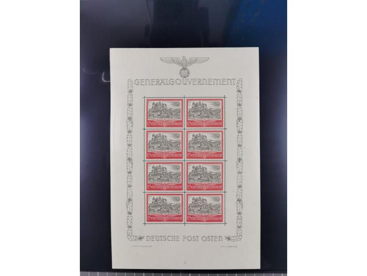 1941/44, Burg und Stadt Krakau 10 Zl., Mi.-Nr. 65 ein Kleinbogen mit Formnummer 3, Mi.-Nr. 125 zwei Kleinbogen mit Formnummern 3 bzw. 4 sowie Mi.-Nr. 125U im Kleinbogen mit Formnummer 4, postfrisch, gute Erhaltung (Mi. ca. 1220,-)