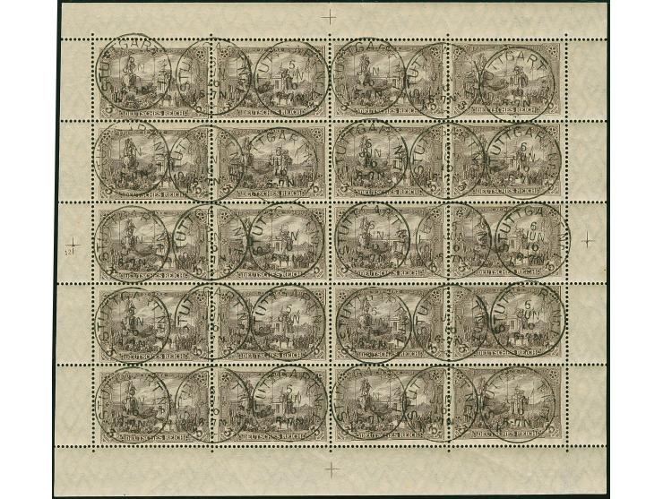 Friedensdruck 3 M. schwarzbraunviolett im komplettem Bogen mit Platten-Nr. "12", sauber gestempelt "STUTTGART 6 JUN 16", jeder Wert signiert Jaeschke BPP