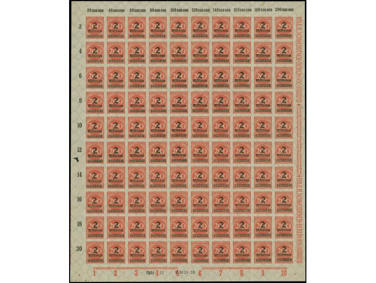 2 Mio auf 200 M. bräunlichrot, durchstochen, kpl. Bogen mit HAN "5515.23" und Druckerzeichen "Rätz", mittig zwischen der 6. und 7. Reihe angetrennt, postfrisch, jede Marke sign. Oechsner BPP