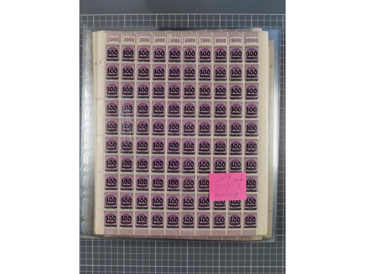 1923, OPD-Bogen, Sammlung von rund 70 Stück, einige mehrfach, dabei u. A. 333AW (Frankfurt) und 335B (Breslau und Stuttgart). Teils übliche kleine Mängel, jedoch insgesamt sehr sauber, meist einzeln in Kunststoffhüllen