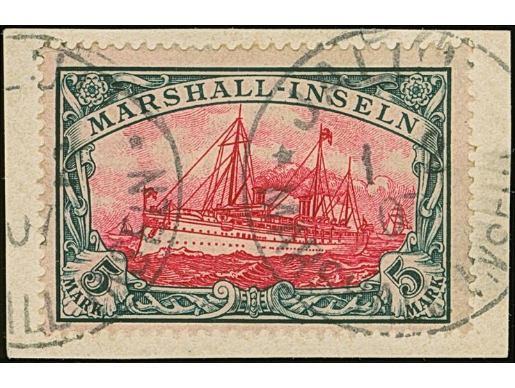 1901/16, Kaiseryacht 5 M. mit Stempel "JALUIT MARSHALL-INSELN 1.2.07" auf Briefstück in einwandfreier Erhaltung, sign. Carl H. Lange