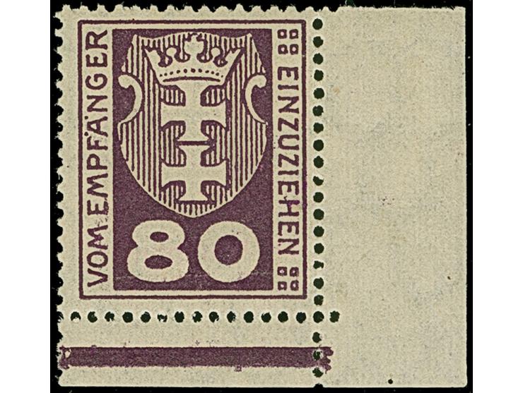 1921, Kleines Staatswappen 80 Pfennig mit stehendem Wasserzeichen, rechte untere Bogenecke, farbfrisch und gut gezähnt, postfrisch, tadellos, u.a. sign. Oertel sowie Fotoattest Gruber BPP (2012)