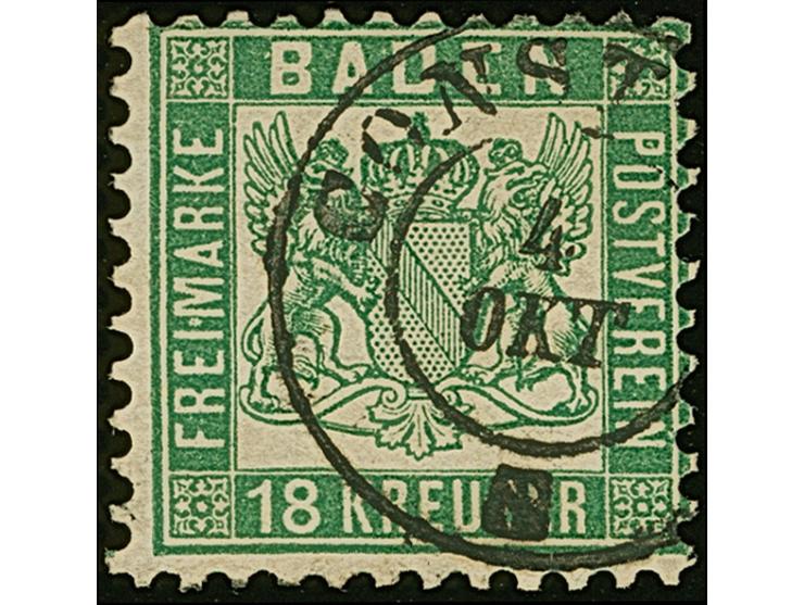 18 Kr. dunkelgrün, farbfrisch und allseits mit vollständiger Zähnung und klarem DKr. “CONST(ANZ) 4.OKT”, in tadelloser Erhaltung. Ein sehr schönes Exemplar dieser seltenen Farbe, doppelt sign. Bühler und Fotoattest Stegmüller BPP (2016)