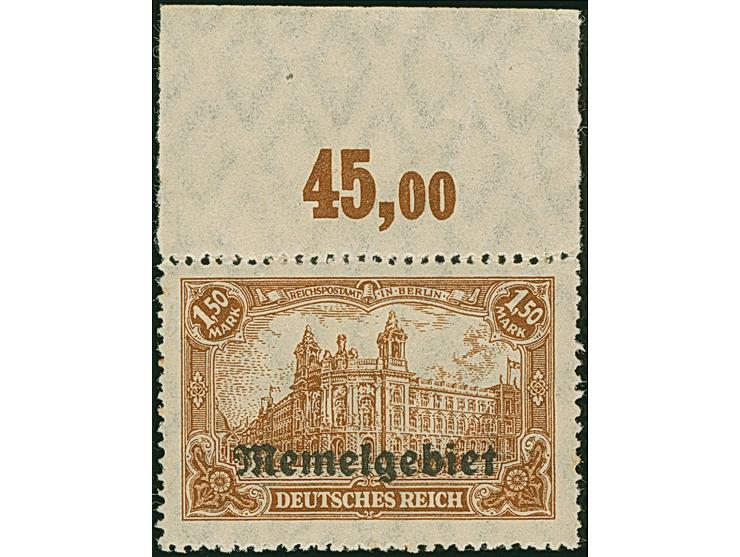 1920, 1,50 Mark schwärzlichbraunocker, Oberrandstück, postfrisch, zwei Zahnspitzen winzig fleckig, sonst tadellos, eine sehr seltene Marke, sign. Richer sowie Befund Huylmans BPP (2011)