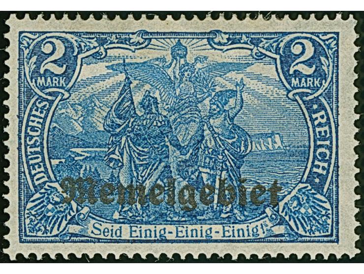 1920, 2 Mark blau 26:17 Zähnungslöchern, farbfrisch, gut gezähnt, sauber ungebraucht, tadellos
