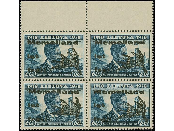 1939, Elchschaufel 15-60 Cent., einheitliche Oberrand-Viererblocks mit den Typen II-I-III-II, postfrisch, tadellos, sign. Dr. Petersen BPP
