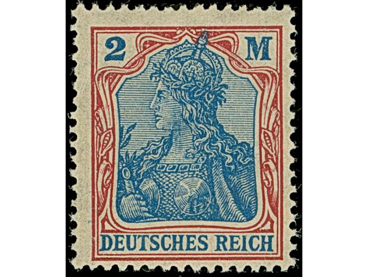 1920, Germania 2 M. dunkellilarot/gruultramarin mit Wasserzeichen Kreuzblütten (amtlich Vierpass-Wasserzeichen). Die farbfrische Marke ist in einwandfreier Erhaltung. Neben den bekannten gestempelten Marken mit diesem Wasserzeichen ist postfrisch bisher kein weiteres Exemplar registriert. Eine der ganz großen Wasserzeichen-Abarten aus der Inflationszeit und in dieser Art ein Unikat, unsigniert mit Fotoattest Weinbuch BPP (2015)
