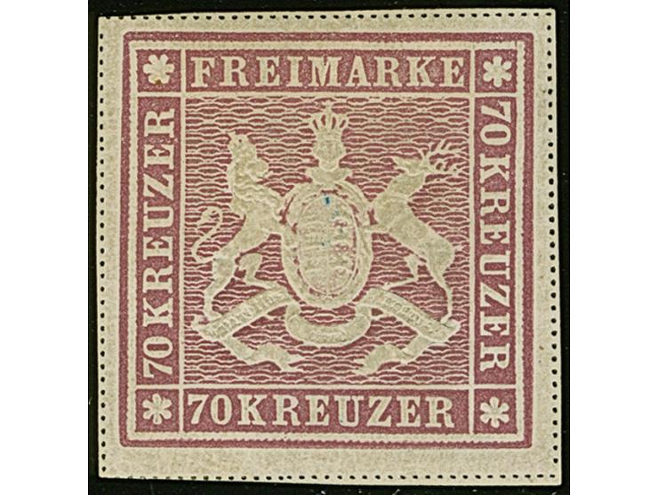 1873, 70 Kr. rotlila, Bogenfeld 5, farbfrisch, allseits breitrandig geschnitten mit schöner Wappenprägung, mit praktisch vollständigen Trennlinien, sauber ungebraucht, winzige Farbspur im Wappen, sonst tadellos, ein schönes Exemplar, u.a. sign. Drahn sowie Fotoattest Heinrich BPP (2025)