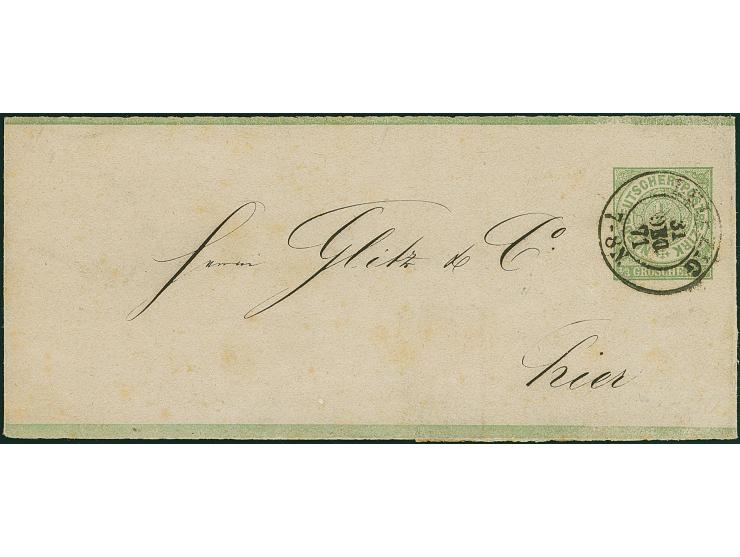 Streifbänder ⅓ Gr. grün mit Letzttagsstempel "LEIPZIG 31 DEC 71" als Ortdrucksache sowie 1 Kr. grün von "FRANKFURT A. M. 10 5 71" nach Friedersdorf