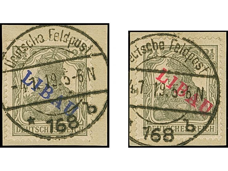 1919, Aufdrucktype II, Unverausgabter Wert: 2½ Pfennig in beiden Aufdruckfarben, je farbfrisch und gut gezähnt, sauber mit Stempel auf Briefstück, tadellos, sign. und je Befund Schlegel BPP (2007)