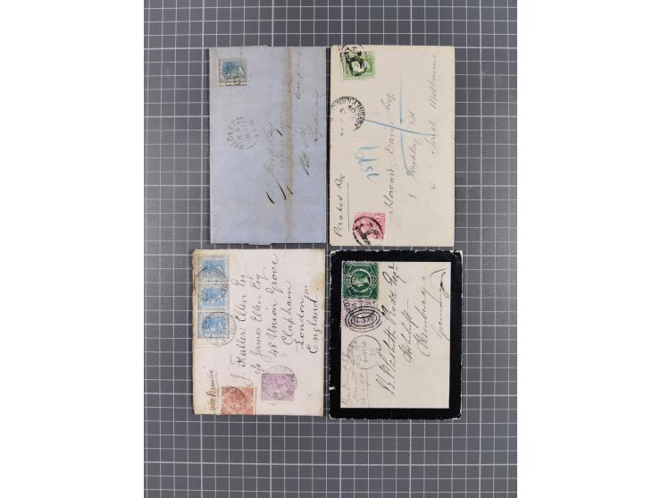 1871/1910, 17 covers & cards including registered mails, uprated and imprint stationery cards, cover bearing 2 c. blue 1871 cancelled Walgett 99, some different, mainly fine.