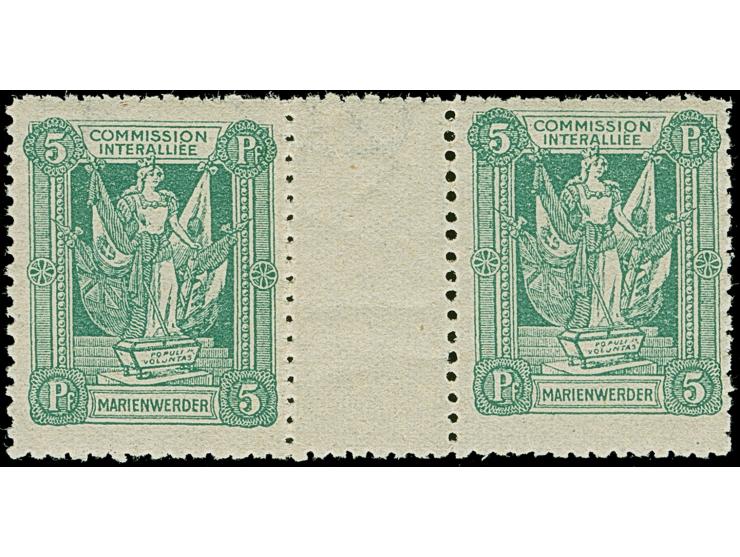 1920, 1. Mailänder Ausgabe 5 Pfennig opelgrün im waagerechten Zwischenstegppar, postfrisch, tadellos