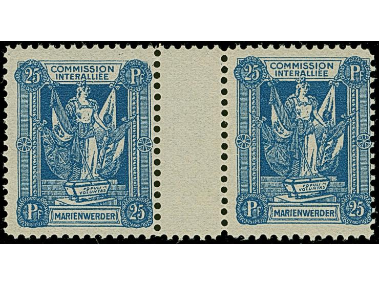 1920, 1. Mailänder Ausgabe 25 Pfennig dunkelultramarin im waagerechten Zwischenstegpaar, postfrisch, üblich gezähnt, tadellos