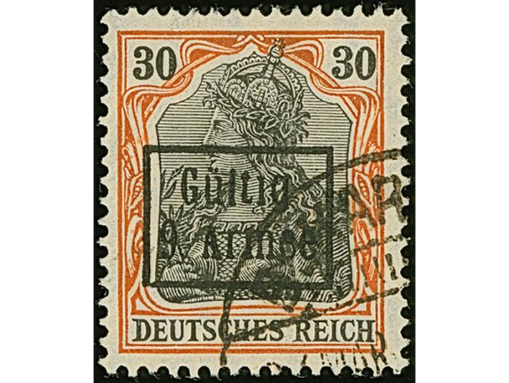 1918, Gültig 9. Armee, Germania 30 Pfennig rotorange/braunschwarz auf hellchromgelb, Friedensdruck, farbfrisch und sehr gut gezähnt, sauber gestempelt, tadellos, ein sehr schönes Exemplar dieser seltenen Marke, Fotoattest Hey BPP (2008)