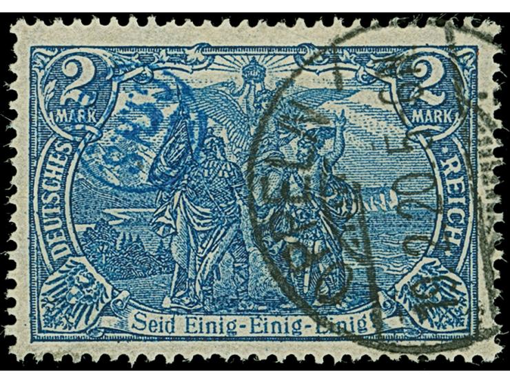 1920, Germania 2 Mark dunkelblau, farbfrisch und gut gezähnt, sauber gestempelt “OPPELN 19.2.20”, tadellos, eine seltene Marke, Fotoattest Gruber BPP (2009)