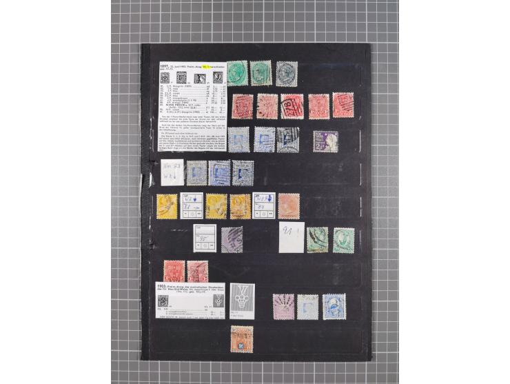 1851/1910, Collection on eight self made album leaves, mostly used, starting imperf issues with duplicates, specialized with many perforation varieties and colour shades, margin stamps and watermark varieties including inverted wm., good cancellations and two stationery envelopes, one official. Some occasional faults, reprints noted and mixed quality.