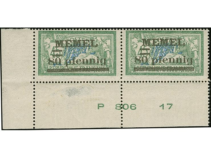 1920, 80 pfennig grün/grauultramarin im waagerechten Paar aus der linken unteren Bogenecke mit komplettem Druckdatum "P 806 17", postfrisch, eine sehr seltene Einheit, vorderseitig im Unterrand etwas geschürft, sonst tadellos, Fotoattest Huylmans BPP (2015)