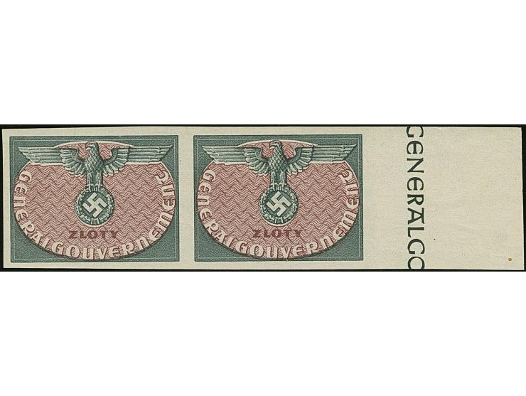 1940, Hoheitszeichen, Probedruck in verausgabten Farben ohne Wertziffer, waagerechtes Seitenrandpaar, postfrisch, tadellos