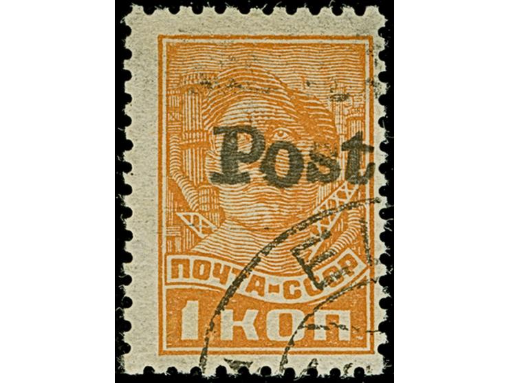 1941, 1 Kopek orange, mit fehlender erster Aufdruckzeile “Eesti”, farbfrisch und gut gezähnt, sauber gestempelt, tadellos, eine sehr seltene und markante Abart,u.a. sign. Nemvalz und Krischke BPP