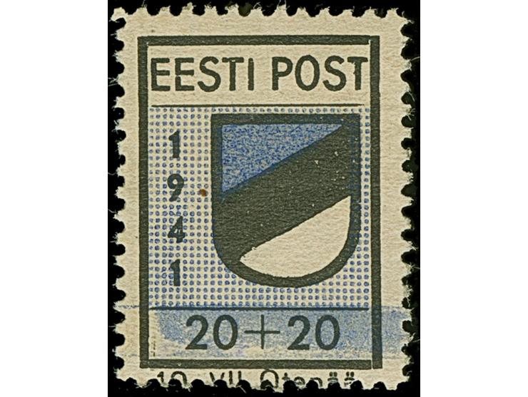 1941, Wappenschild 20 Kopeken, gezähnt, Type II, farbfrisch und gut gezähnt, mit Abart “blauer Balken durch Wertangabe”, postfrisch, tadellos, sign. Eichenthal sowie Fotoattest Krischke BPP (1992)