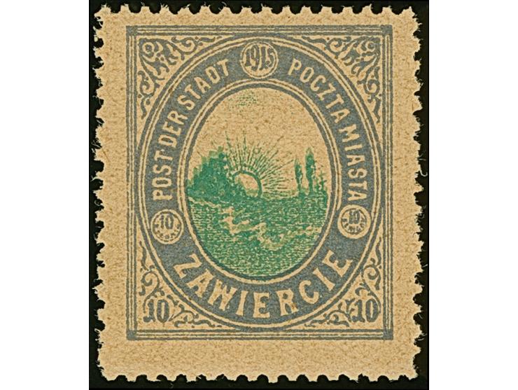 1916, Ansichten 10 Pfennig mattultramaringrau/dunkelopalgrün, mit Doppeldruck des grünen Mittelstücks, farbfrisch und gut gezähnt, ungummiert. Eine sehr seltene Marke, vermutlich handelt es sich um einen Probedruck, ProFi hat nur ein weiteres Stück registriert, sign. Rachmanow und Mikulski mit Fotoattest (1988)