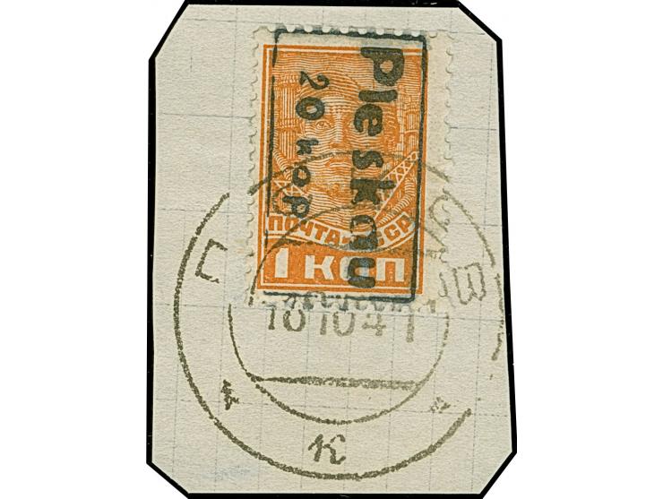 1 Kopek schwärzlichorange, ohne Wasserzeichen, farbfrisch und gut gezähnt, sauber mit Stempel "PSKOW 18 10 41" auf Briefstück (zur Kontrolle gelöst), tadellos, eine sehr seltene Marke, sign. Zirath mit Fotoattest (2008)