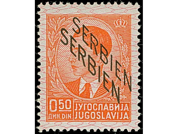 1941, König Peter II. 0,50 Dinar rotorange, mit doppeltem Aufdruck, postfrisch, tadellos, sign. Diena