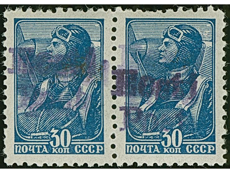30 Kopeken dunkelviolettultramarin, mit violettem statt schwarzem Handstempelaufdruck, missbräuchlich angebracht, waagerechtes Paar, postfrisch, tadellos, ein interessantes Stück, Befund Löbbering BPP (2014)