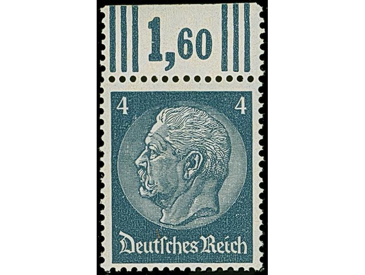 1940, Hindenburg 4 Pfennig grauultramarin, Oberrandstück mit Aufdruck nur im Blinddruck, postfrisch, tadellos, heute aufgrund der Prüfproblematik im Michel nicht mehr gelistet, ein interessantes Stück, unsigniert mit Fotoattest Krischke (2003)