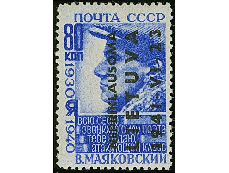 1941, Majakowski 80 Kopeken blau, mit vorder- und rückseitigem Aufdruck, postfrisch, tadellos, eine sehr seltene Abart, nach unseren Unterlagen nur ein Bogen zu 50 Stück überdruckt, unsigniert mit Fotoattest Klein BPP (2006)