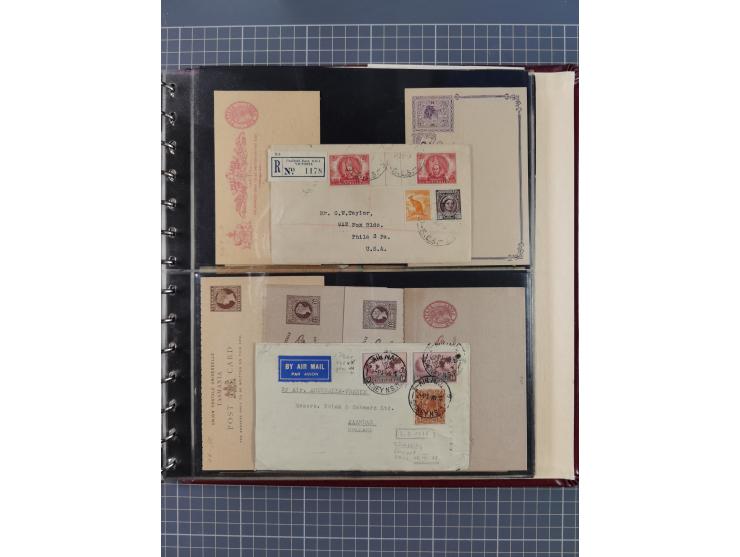 1890/1910, 53 covers & stationery cards including States, registered mails, perfins on cover, good cancellations, uprated and imprint stationery cards, cover 1947 bearing 2½ d. red gutter pair, mainly fine.