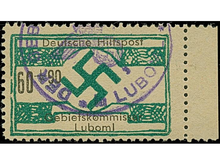1944, Luboml 6-60 Pfennig, einheitlich mit rechtem Seitenrand, sauber mit Dienstsiegel entwertet, tadellos