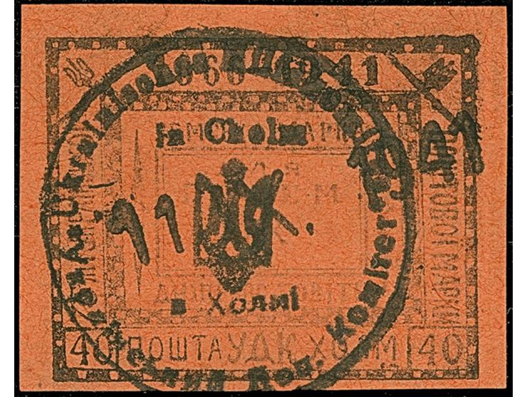 3. AUSGABE “SEMSVTO”: 3 Gr. blau, auf weißem bzw. auf graulichblauem Papier sowie 5 Kopeken auf rot, letztere gestempelt, tadellos  (Maksymczuk #27-28)