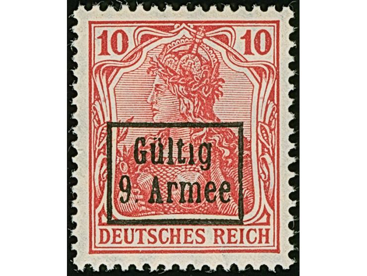 1918, Gültig 9. Armee, Germania 10 Pfennig rotkarmin Friedensdruck, postfrisch, tadellos, eine sehr seltene Marke, Fotoattest Wasels BPP (2018)