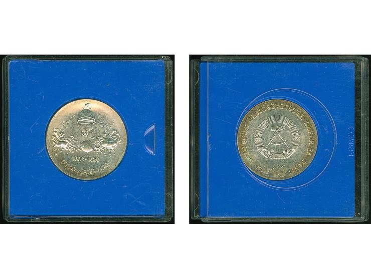 DDR: PROBE: 10 Mark 1977, Otto von Guericke, leichte Patina, kleine Flecken, Stempelglanz