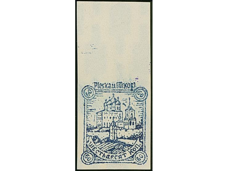 1941, Kathedrale von Pleskau 60 Kopeken dunkeblau, ungezähnter Probedruck mit Oberrand auf weißem Papier mit Wasserzeichen "stehende Querrechtecke", ohne Gummi, tadellos, u.a. sign. Krischke sowie Dr. Schultz