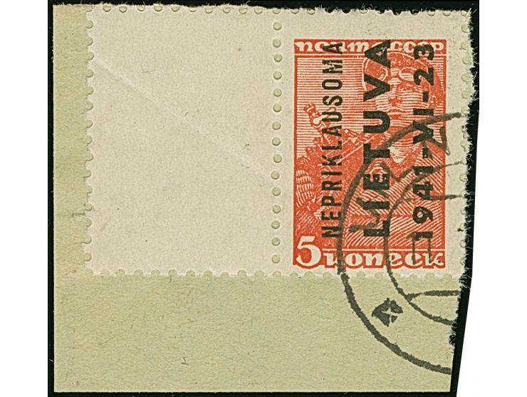 1941, 5 Kopeken bräunlichrot, links mit komplett gezähntem Leerfeld in Markengröße, sauber gestempelt auf Briefstück, tadellos, sign. Krischke