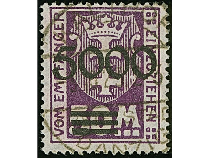 1923, 5000 auf 50 Mark, rußiger Aufdruck, farbfrisch und gut gezähnt, sauber zeitgerecht gestempelt “KALTHOF 1.10.23”, tadellos, Fotoattest Soecknick BPP (2018)