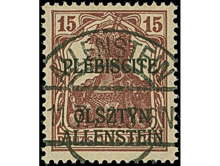 1920, Aufdruckausgabe Germania 15 Pfennig karminbraun, sauber gestempelt, tadellos, Fotoattest Hey BPP (2011)