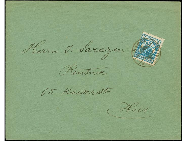 Bielefeld-Hansa: 1899, 2 Pfg. blau mit Stempel “HANSA BIELEFELD“ auf Ortsbrief in einwandfreier Erhaltung, selten