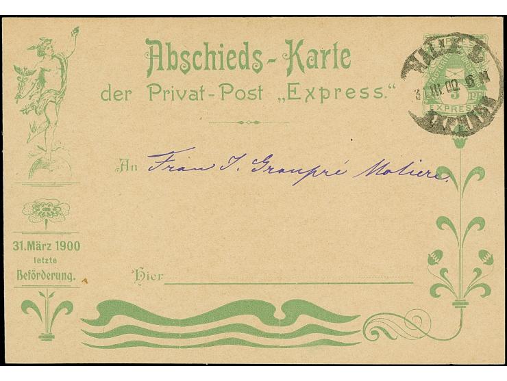 Halle/Saale-Courier: 1900, Abschieds-Ganzsachenkarte 5 Pfg. mit Stempel “COURIER 31.3.1900” und Stadtbrief-Beförderung Express Abschieds-Ganzsachenkarte 5 Pfg. mit Stempel “HALLE EXPRESS 31.III.00”, in guter Erhaltung