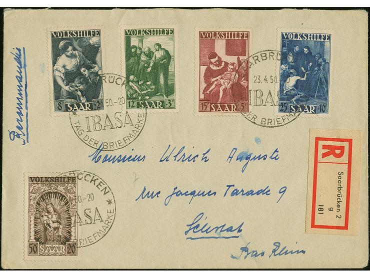 1949, Volkshilfe 8-50 Fr. sauber mit Stempel der Ausstellung “IBASA 23.4.50” nach Straßburg ohne Ankunftsstempel, Marken tadellos, Umschlag mit Beförderungsspuren, sign. Hoffmann BPP sowie Fotoattest Ney (2017)