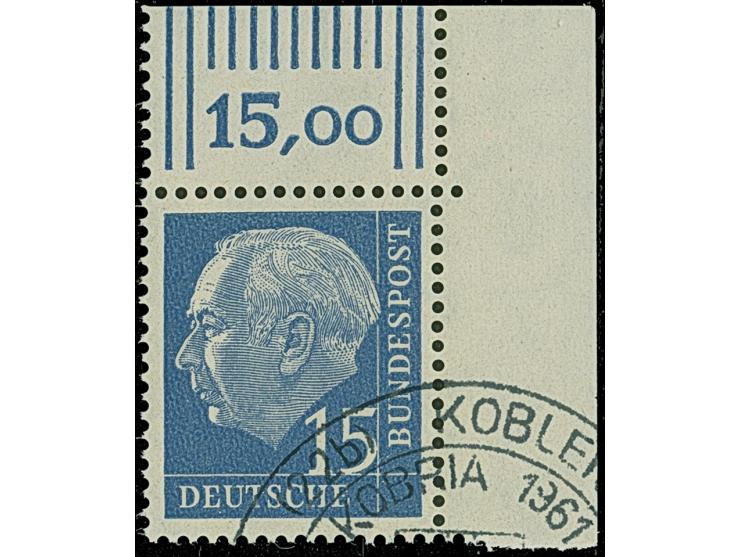 1960, Lumogen 5-40 Pfg., kpl. einheitlich rechte obere Bogenecke, je sauber mit Sonderstempel “KOBLENZ KOBRIA 1961”, tadellos, Fotoattest H.-D. Schlegel BPP (2016)
